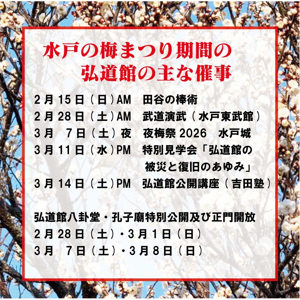 2月11日より 水戸の梅まつり がはじまりました。弘道館では以下のイベントを予定しています
